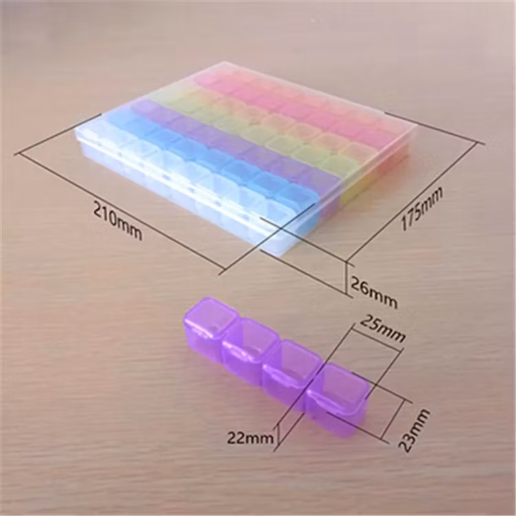 Liten praktisk förvaring för diamond painting-pärlorna. Sitter ihop 4-4 för enkel åtkomst. Enkel att förvara och tar ingen större plats.