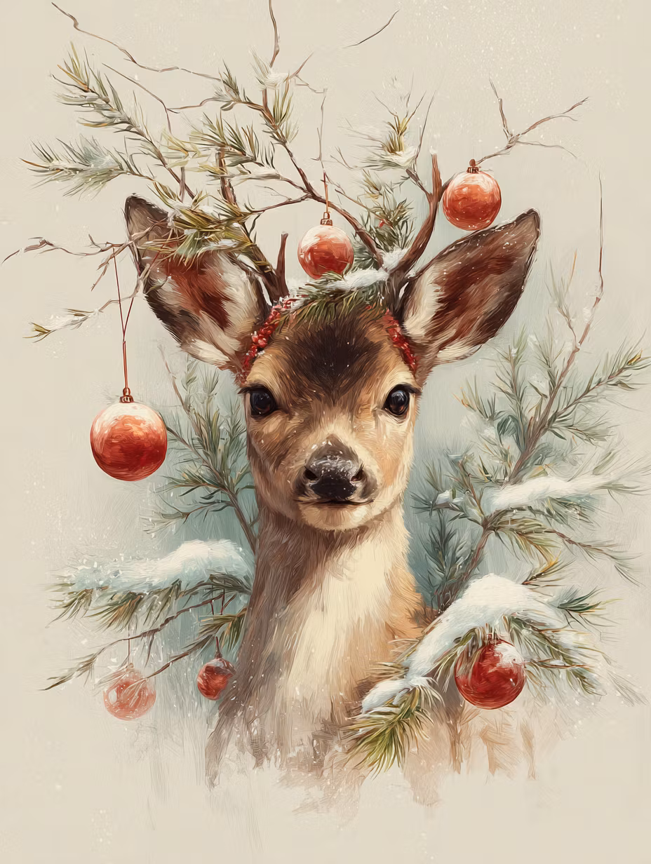 Diamond Painting - Lilla rådjuret i vinterglöd (Beställningsvara)