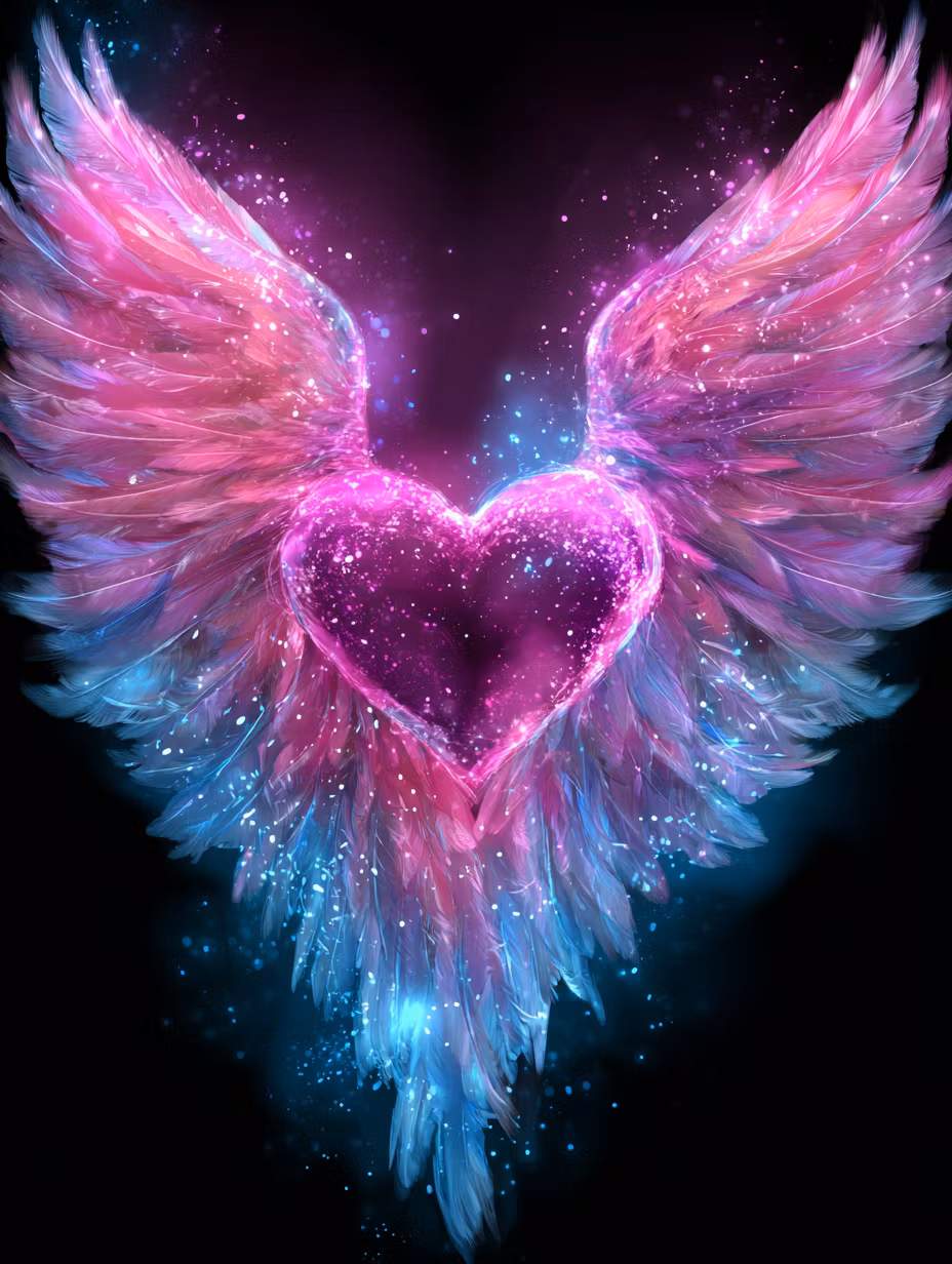 Diamond Painting - Magiskt hjärta med vingar i neon (Beställningsvara)