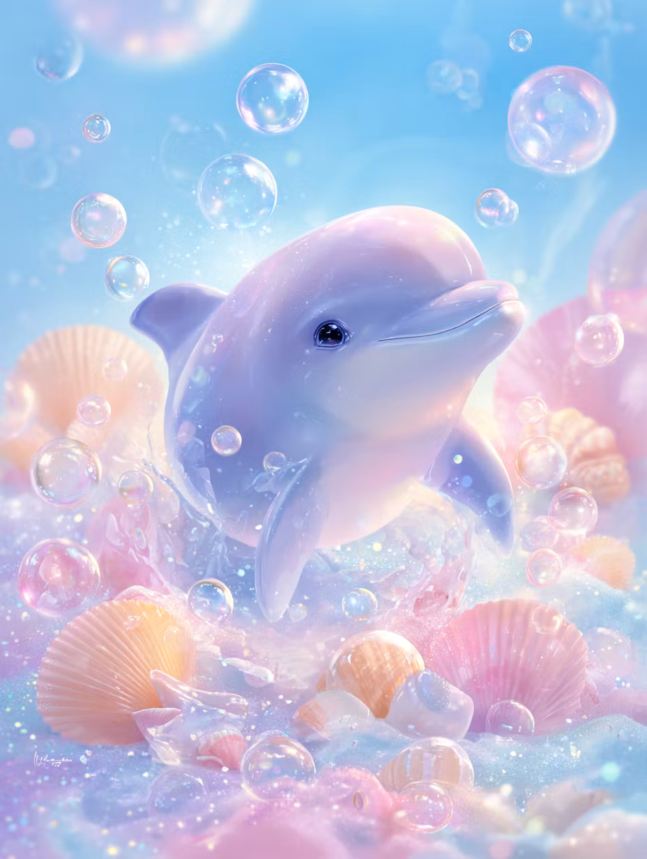 Diamond Painting - Pastelldröm med delfin och snäckor (Beställningsvara)