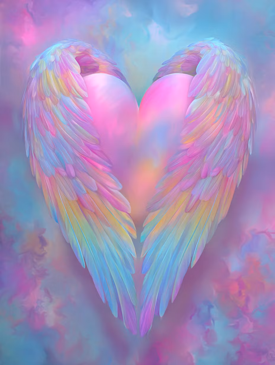 Diamond Painting - Pastellhjärta med änglavingar (Beställningsvara)