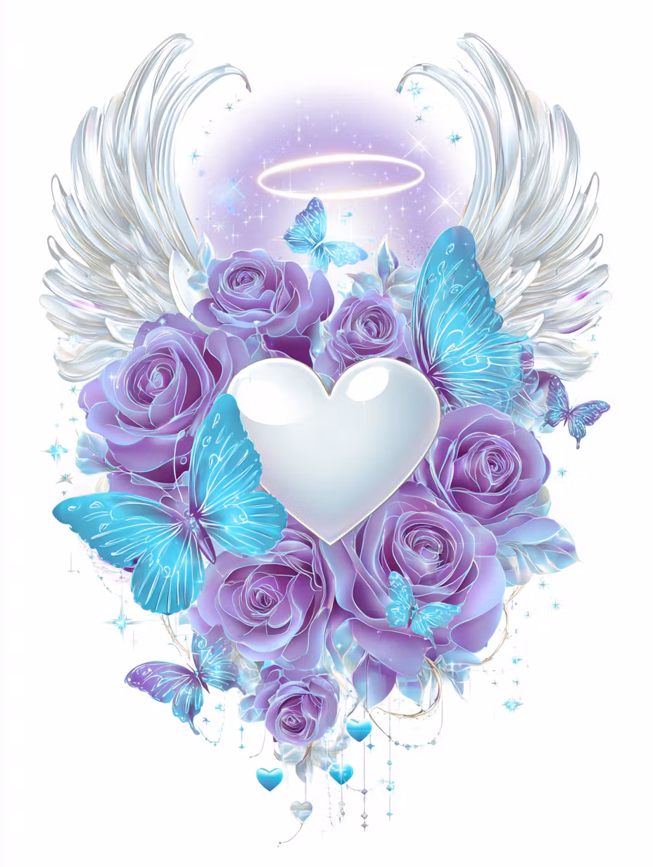 Korsstygn - Änglahjärta med rosor och fjärilar (Beställningsvara)