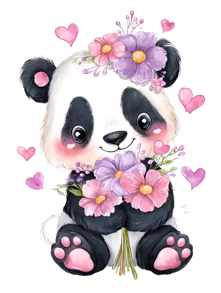 Korsstygn - Söt panda med blomsterbukett (Beställningsvara)