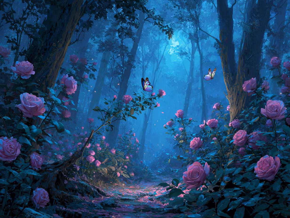 Paint by number - En drömsk kvällsvandring i rosornas skog (Beställningsvara)