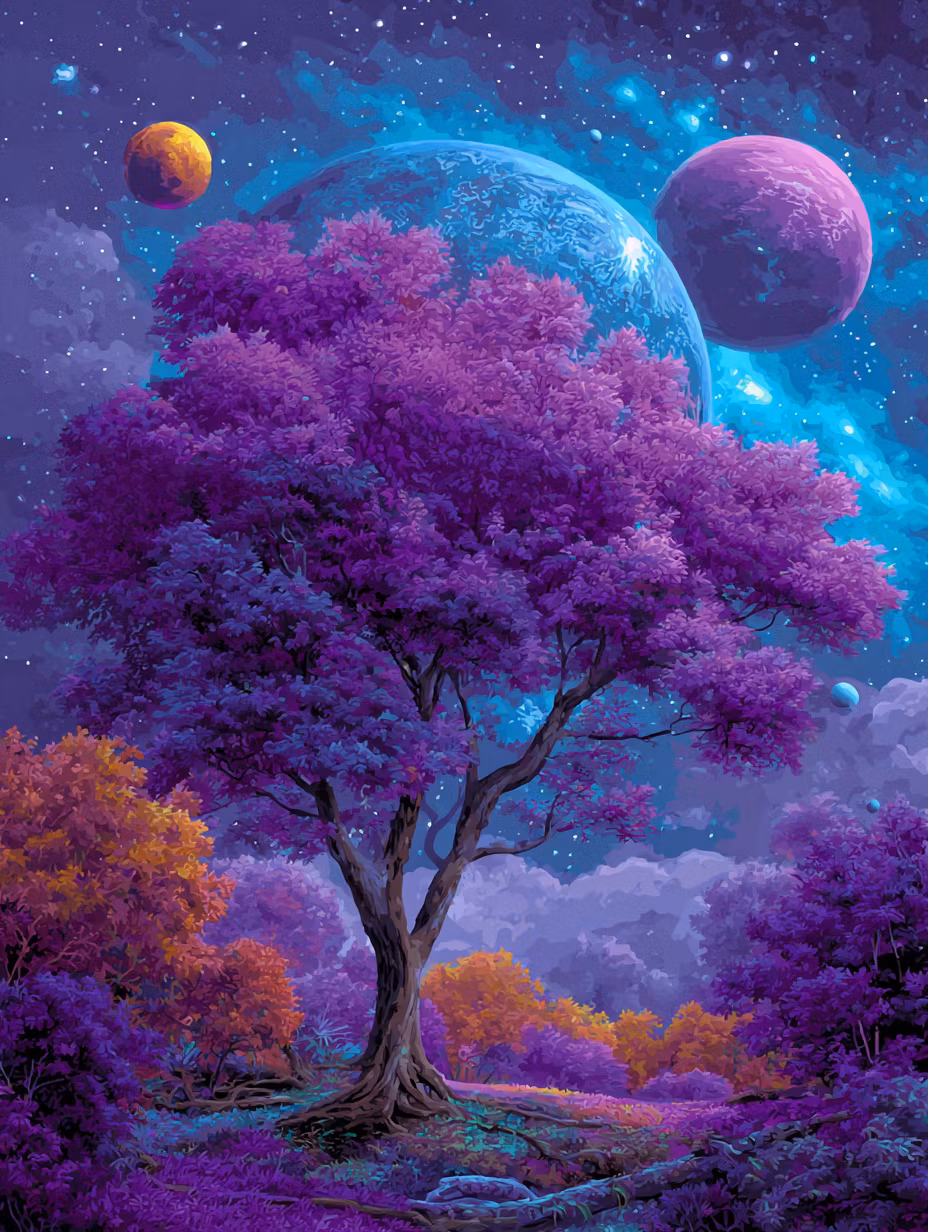 Paint by number - Drömträd under stjärnplaneter (Beställningsvara)