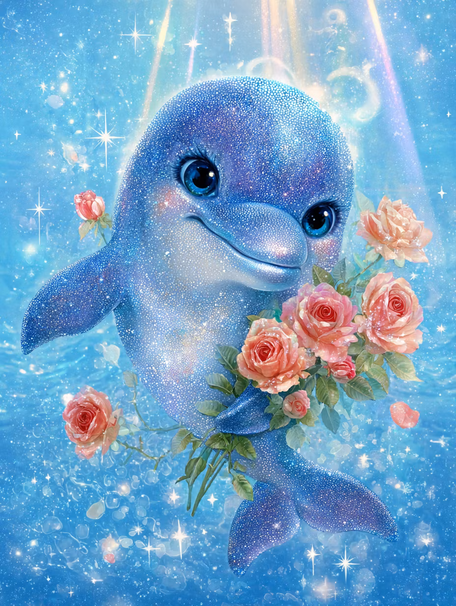 Paint by number - Glittrande delfin med rosor (Beställningsvara)