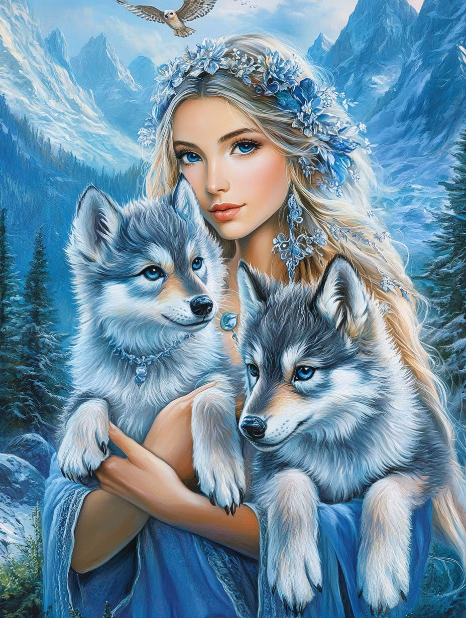 Paint by number - Kvinna med vargvalpar (Beställningsvara)