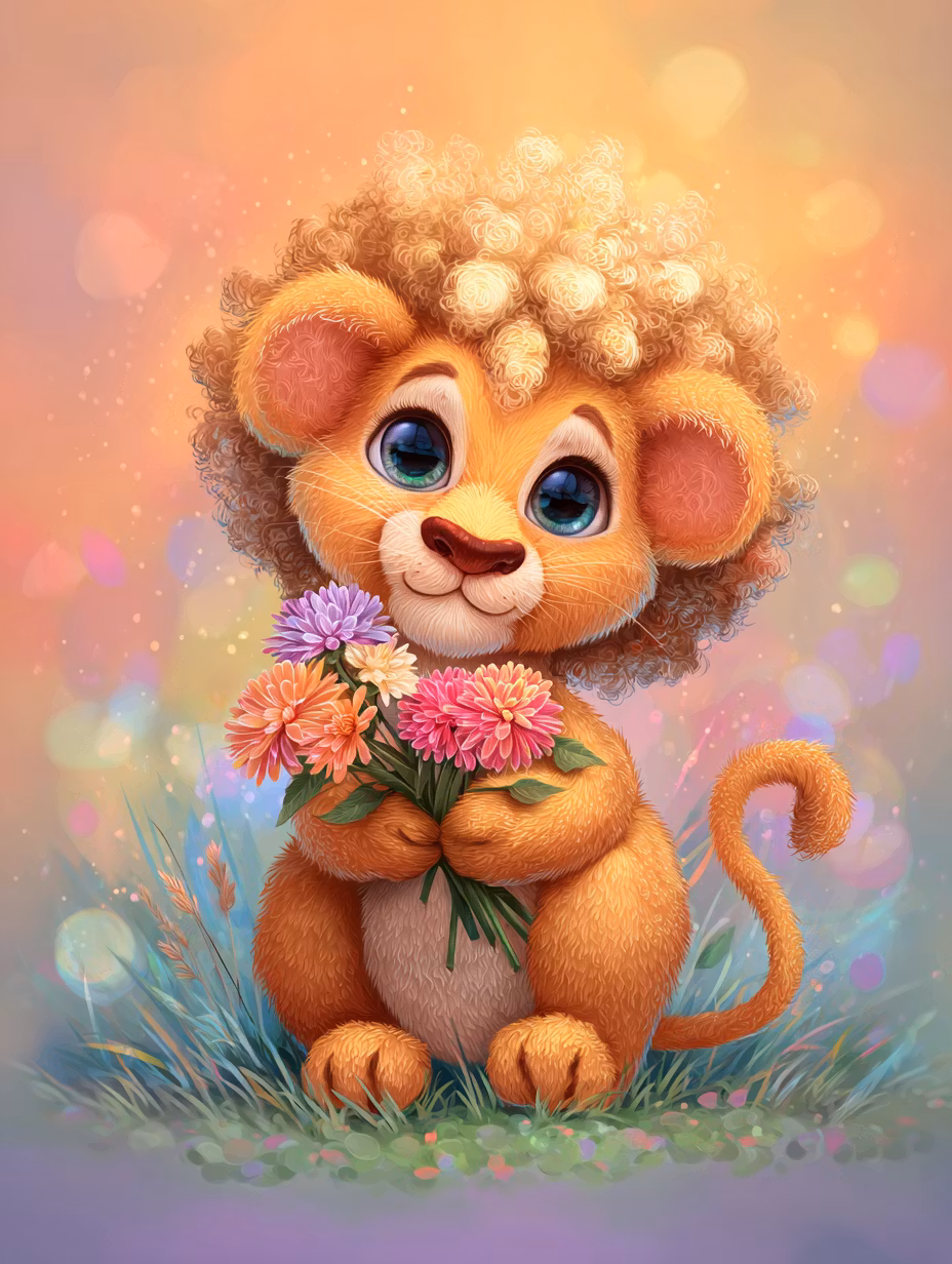 Paint by number - Lejonunge med blombukett (Beställningsvara)