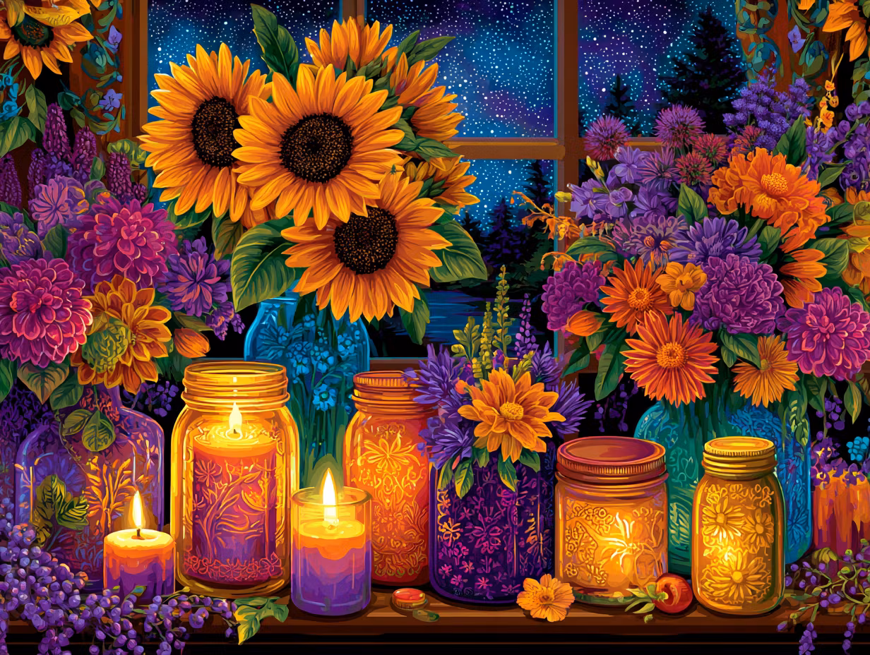 Paint by number - Solrosmagi i nattens fönstersken (Beställningsvara)