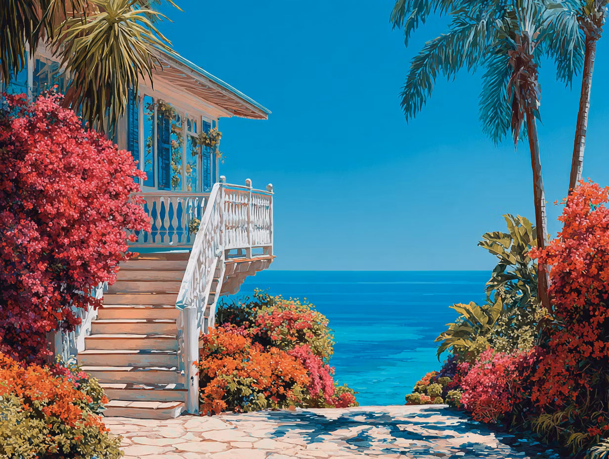 Paint by number - Sommaridyll vid havet i Blommande Färger (Beställningsvara)