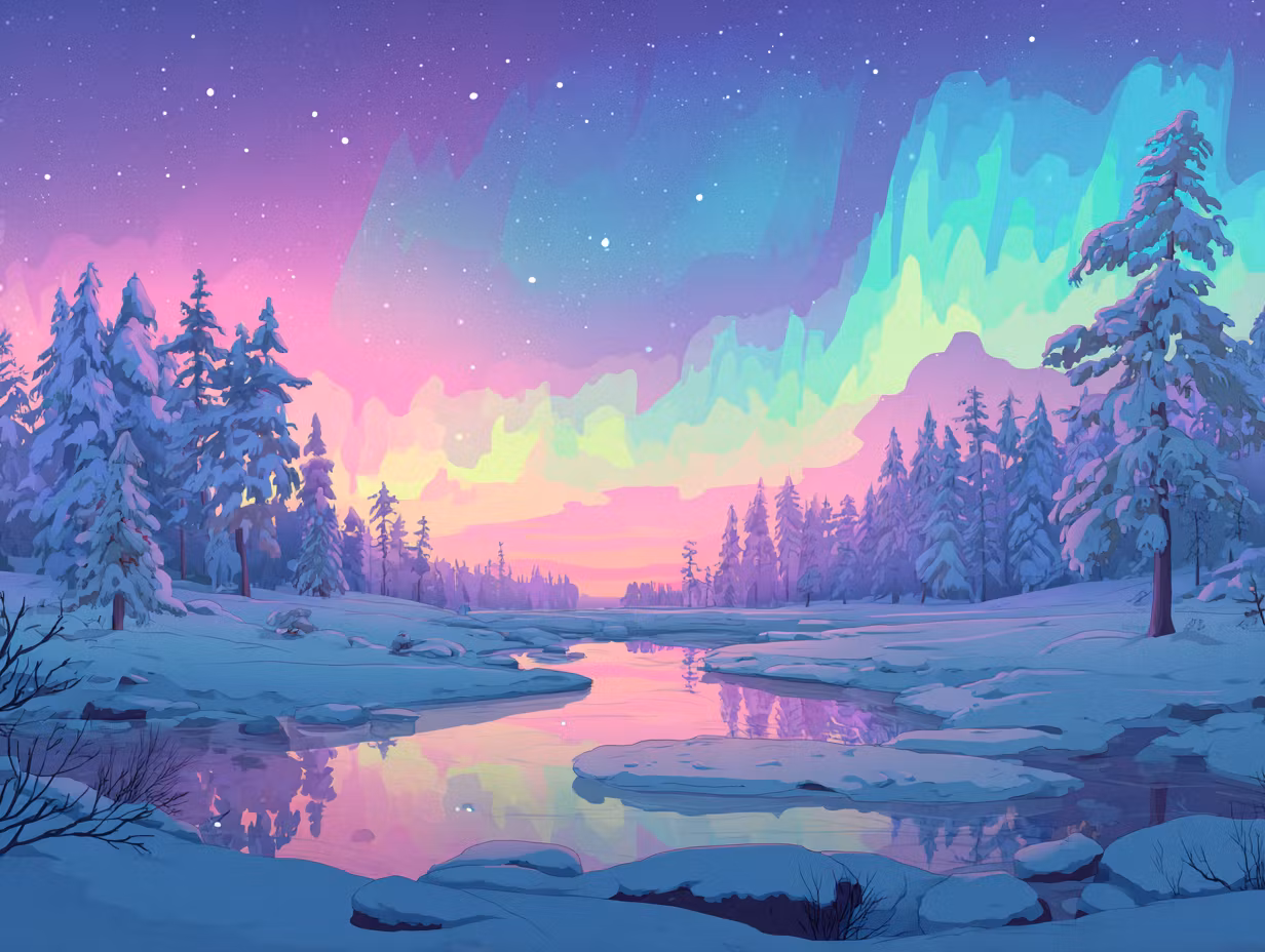 Paint by number - Vinterns sagolika ljusshow (Beställningsvara)