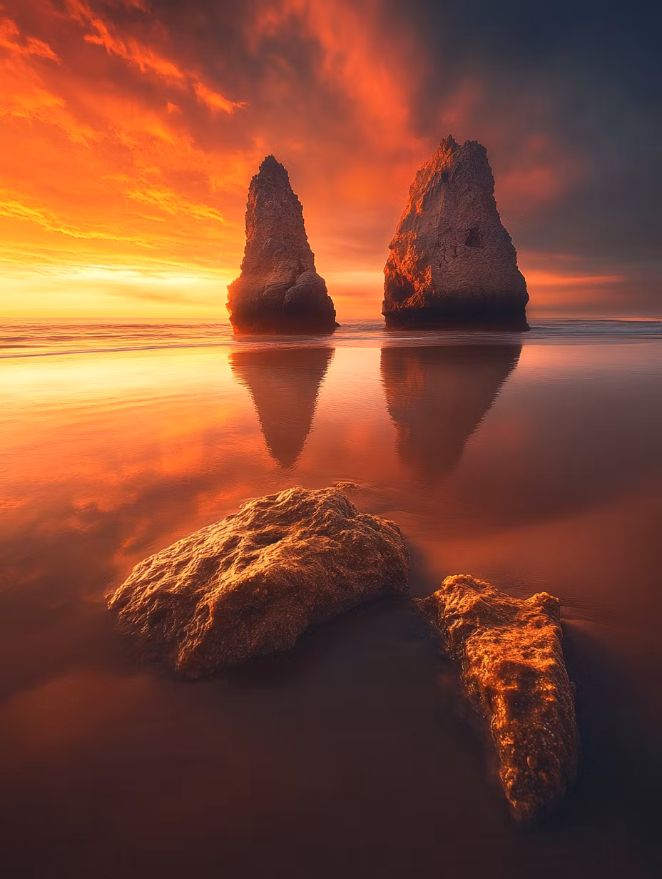 Vacker utsikt över vattnet med tvÄ stora stenbumlingar.