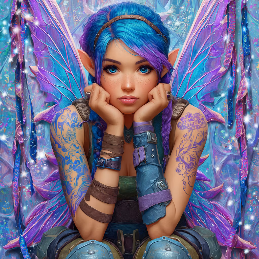 Färgstark älva med lysande vingar i magisk värld