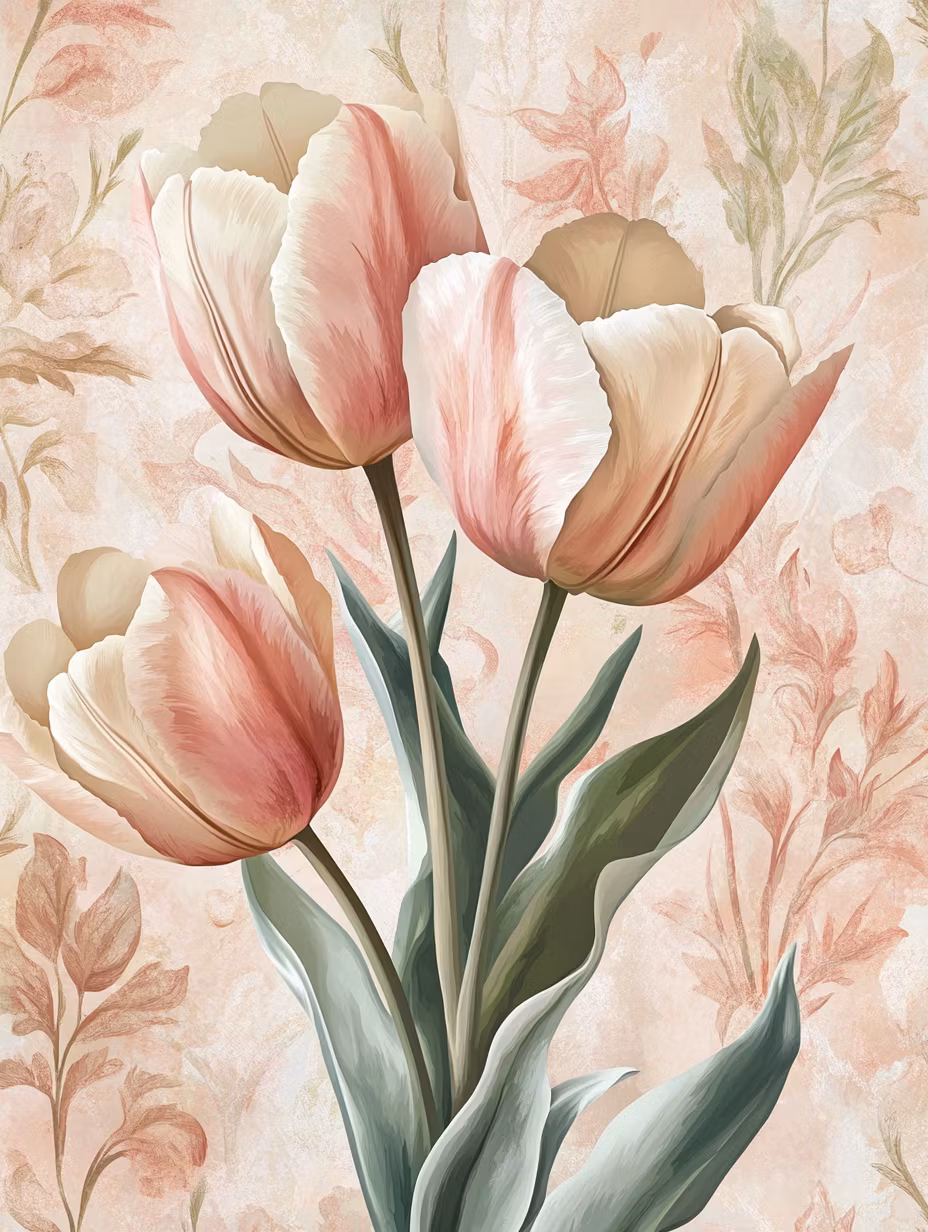 Korsstygnsmönster: Eleganta tulpaner i tre mot en ljus bakgrund.